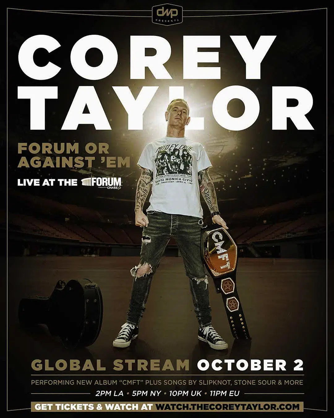 To celebrate the release of his first solo album, CMFT, Corey Taylor held a livestream performance at The Forum in Los Angeles on Friday, which he dubbed Forum Or Against ‘Em. Due to popular demand, Taylor has now made it so the show can be viewed until 10:59 CT on October 7th. Tickets to the event are still available to be purchased and offer unlimited re-watch access.