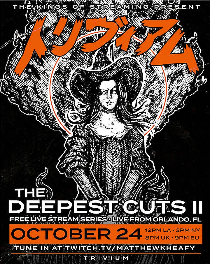 Trivium announced that they will have a second The Deepest Cuts livestream show on October 24th at 2:00pm CST. Once again, during The Deepest Cuts II they will perform rarely played songs from their catalog. The show will stream for free on Matt Heafy’s Twitch account. Heafy said: