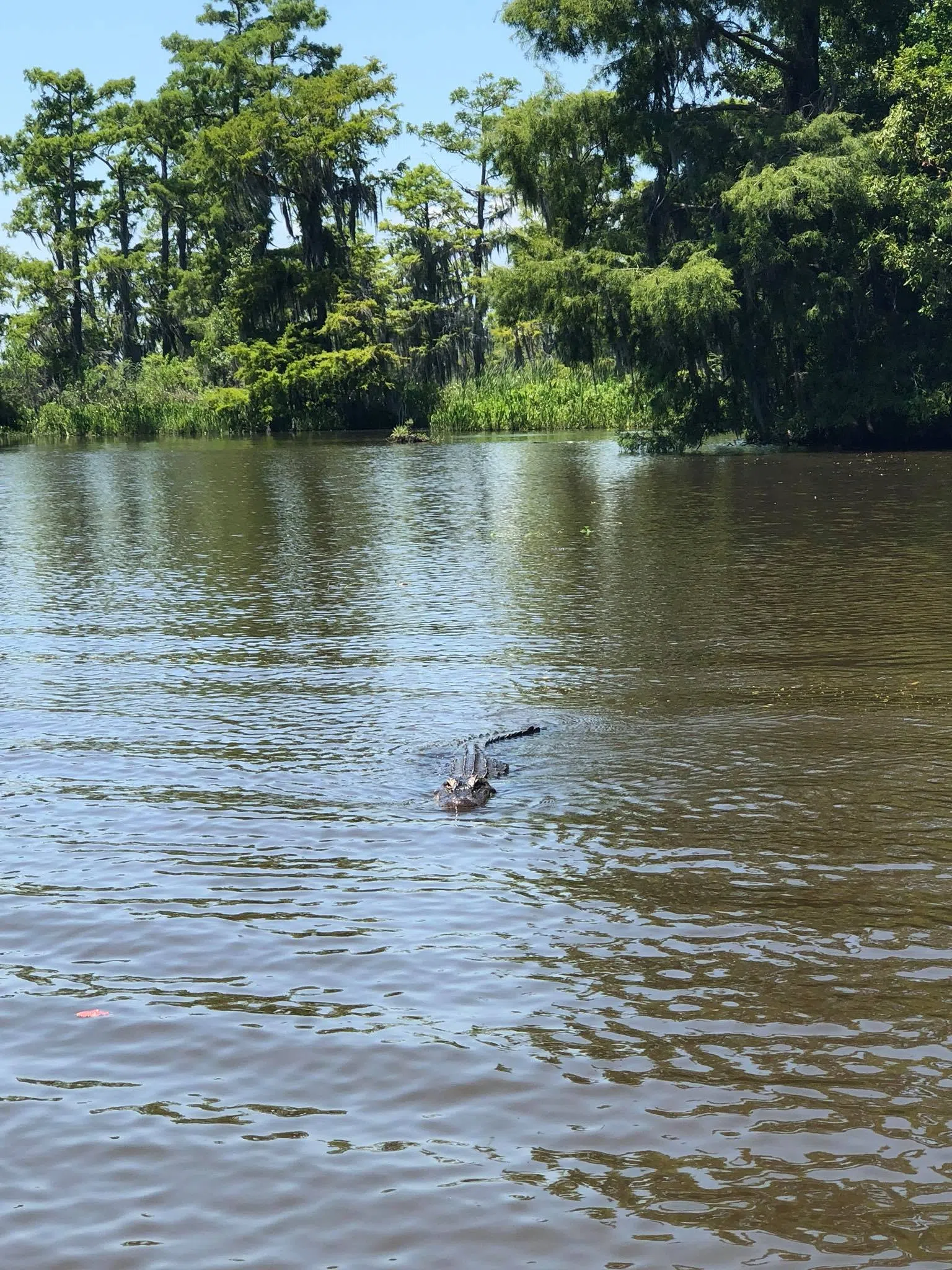 My sister-in-law requested a fast fan boat tour, my husband requested not to go on one at all, so we compromised and went on a 60-seater that took us slowly through the bayou. We saw a million or more alligators as our tour guide fed them marshmallows. When we turned around to look at the guide, he was holding a baby one, and let everyone take a turn holding them! It was a beautiful and wild trip