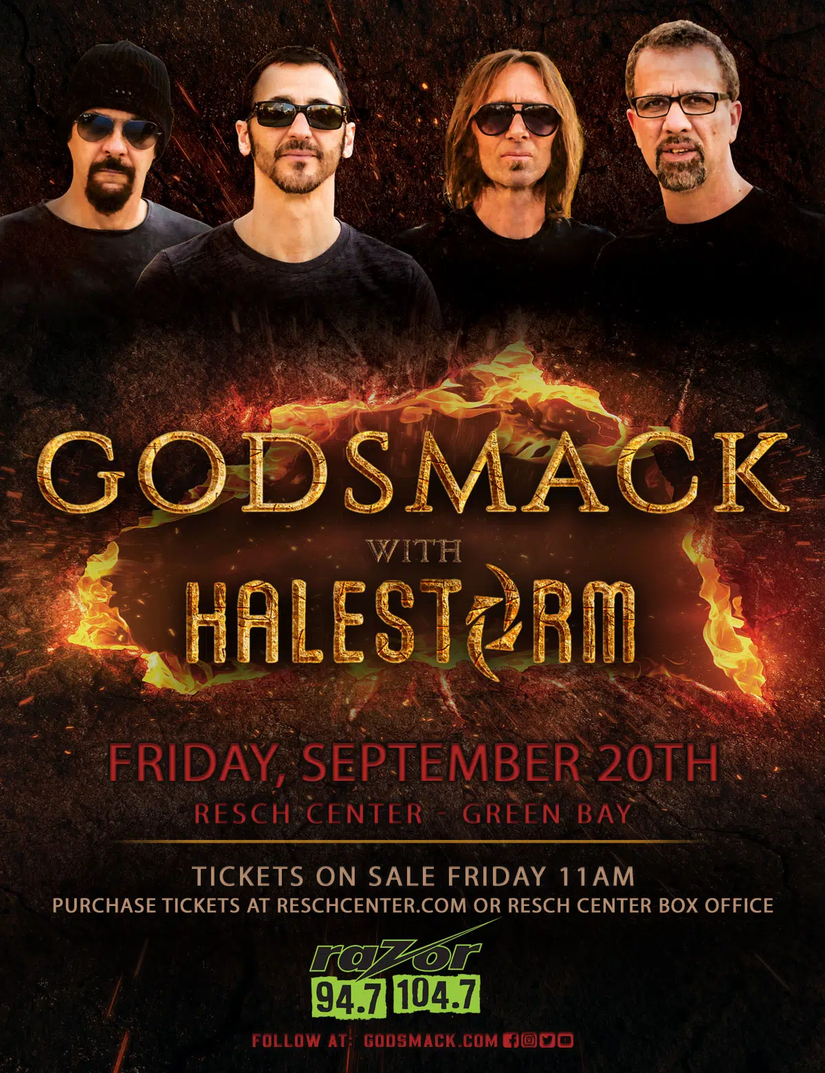 Green Bay (June 24, 2019) - GODSMACK will extend their in-progress world tour with Halestorm and Monster Truck supporting on Friday September 20, 7 p.m. at the Resch Center.