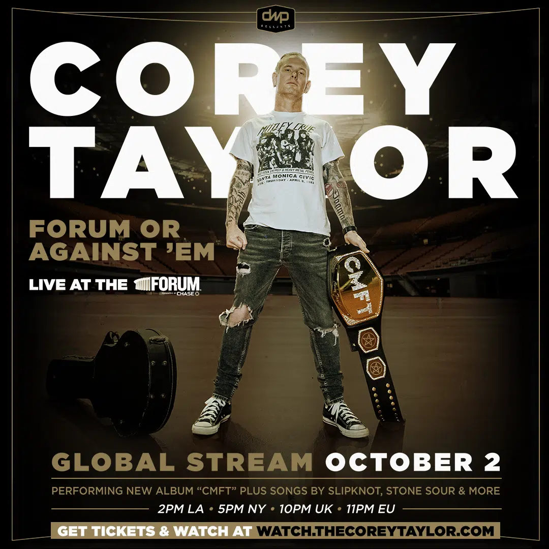 Corey Taylor and his band will be making history on Friday, October 2nd with a global live stream from the legendary Los Angeles venue, The Forum, to celebrate the release of his debut solo album, CMFT. Tickets & VIP packages for this historic streaming event are on sale now!