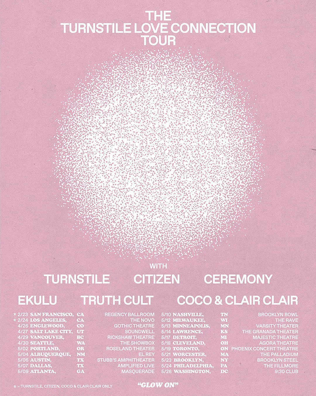 From the moment they hit the ground a decade ago, TURNSTILE have never stopped moving forward -- and they're sure as hell not about to look back. The Baltimore band immediately distinguished themselves from the pack with their infectious, aggressive punk fusion; their welcoming, satisfying live shows; and most importantly, their willingness to experiment, as seen by the steady evolution. The only constant in the TURNSTILE universe, aside from love, is progression.